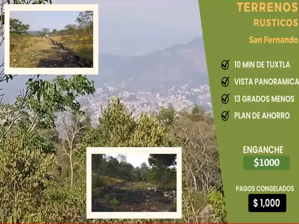 Cuento con 2 terrenos en venta en san fernando en el ejido hidalgo, que compre para mis dos hijos, que originalmenten lo tome como un ahorro, pero por ahora ya no puedo pagarlos y a su vez si los dejo de pagar por 3 meses perdere el año y medio que llevo pagando, uno es de 250 mts. cuadrados en 95 mil de contado y el otro de 357 mts. cuadrados en 140 mil, pero la ventaja es que cualquiera de los dos, los vendo con solo $1000 de enganche te doy posesion, y $1000 de pago mensual, fijos por todo el tiempo es decir serian 95 pagos y 140 pagos mensuales congelados, o de contado hay un descuento de 10 mil.